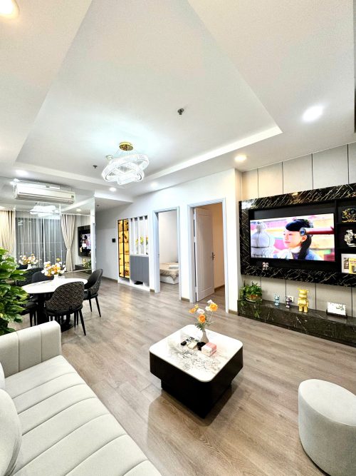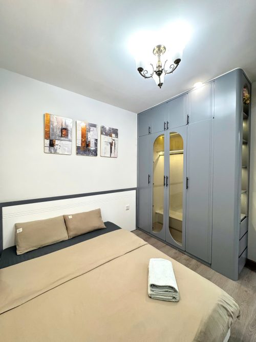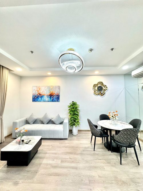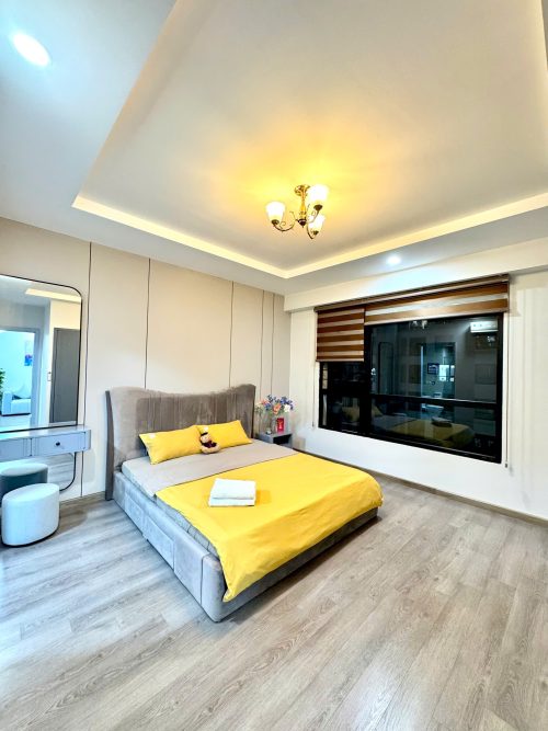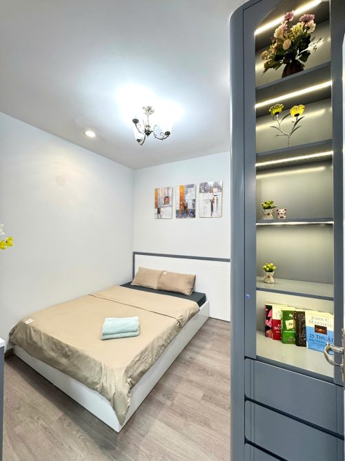 Hai phòng ngủ riêng biệt, giường ngủ êm ái, không gian sinh hoạt chung rộng rãi, phòng khách liền bếp được trang bị đầy đủ thiết bị cần thiết cho sinh hoạt ngắn hạn hoặc dài ngày. Mỗi chi tiết trong căn hộ đều được chăm chút nhằm đảm bảo sự sạch sẽ, tiện lợi và cảm giác như đang ở nhà.